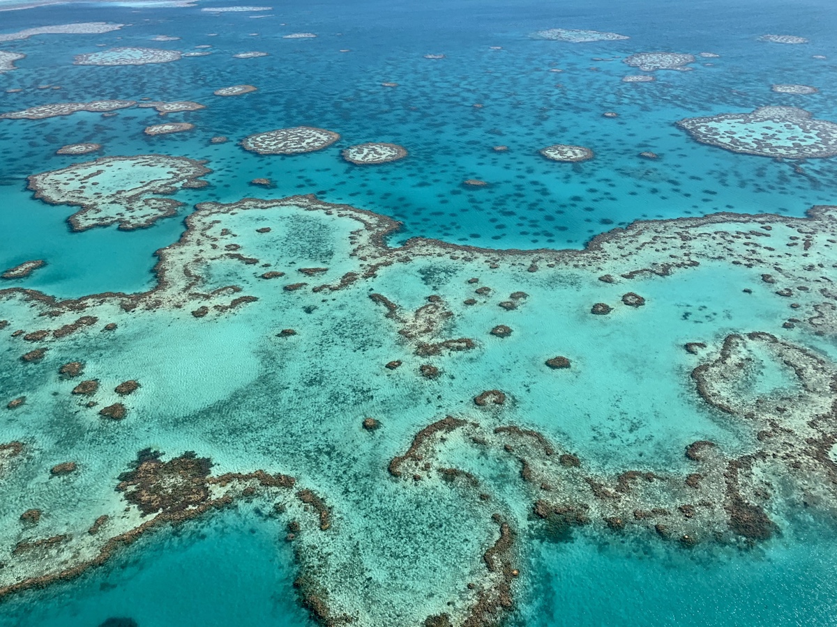 Airlie Beach. Endlich war es soweit. Eines der Highlights, wenn nicht gar DAS Highlight der Reise, stand an und seines Zeichen ein ganz wichtiger Punkt auf meiner Reise-Bucketlist: Mein Ausflug zum Great Barrier Reef und zum Whitehaven Beach. 6:40 Uhr ging es also los, ca 40 Leute würde ich sagen wurden in den Bus verfrachtet und es ging raus an den Airport. Highlight 1 wartete: Der 1-stündige Flug über die ganze Region. Jackpot: ich, der Co-Pilot. Brian, der Pilot erklärte mir alle Knöpfe, was passieren wird, usw. in einer solchen Ruhe, dass man wirklich dachte, jetzt fliegt man direkt selber. Er beendete jedoch seine genauen Ausführungen mit den Worten „aber nix von diesen Köpfen o.ä. wirst du berühren, alles klar?“ Eine kleine Enttäuschung machte sich breit. Aber gut. Brian war ein ziemlich netter und witziger Typ. Anfänglich nicht so witzig fande ich, dass er während des Fliegens andauernd am Handy hing und Nachrichten schrieb. Jedoch war es wiederum ziemlich lässig, als wir dann quatschten, dass er mir dann noch Tipps für Singapur raussuchte. Die Leute hinter mir auf den billigen Plätzen wurden glaube etwas nervös. Die sollen sich mal beruhigen, so mein Gedanke. Ich bin ja der Co-Pilot. Er hatte mir vorher soviel erklärt, so schwer kann es nicht sein, einzuspringen, falls was schief läuft ☺️😆 Scherz. Der Flug war alles in allem unfassbar spektakulär, man kann es mit Worten gar nicht wiedergeben. Wir hatten wohl auch ziemliches Glück. Angeblich ist gerade früh morgens Flut und man sieht das Heart Reef dadurch nicht so gut. Bei uns kam es aber glücklicherweise super gut raus. Bilder dazu weiter unten.