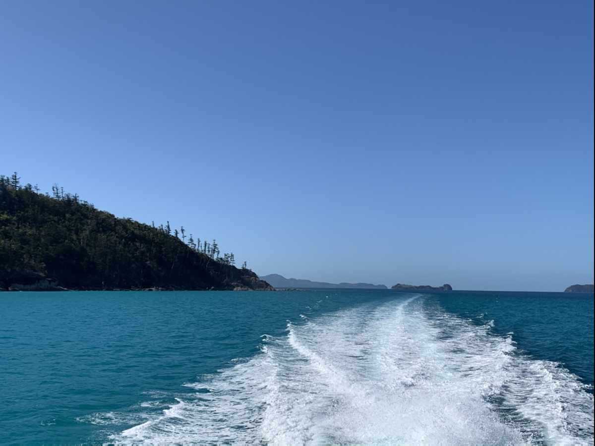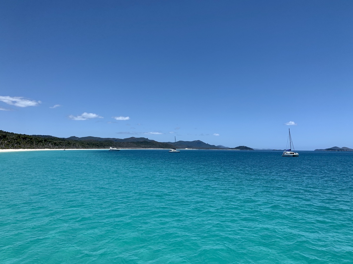 Anschließend ging es zurück in den Bus, zurück an den Hafen und rauf auf‘s Schiff. Es war mittlerweile 10 Uhr als das Schiff ablegte und wir in Richtung Whitsunday Islands und Whitehaven Beach schipperten. Die Fronten auf dem Schiff waren schnell geklärt: die Chinesen machen ihr Ding und wir Europäer unseres. Damit sich die Crew besser um uns kümmern kann, wurden wir sowieso getrennt und Teile der folgenden Tour erfolgten separat in eben diesen Gruppen. Was wirklich gut war. Ohne unverschämt oder rassistisch zu sein, aber wir sind immer genervt von Chinesen – und die von uns. Mit von der Partie war sogar ein Crew-Mitglied, welche Muttersprachlerin war. So entstanden keine Sprachbarrieren bzw Verständnisprobleme. Wir sind also erst auf die Insel und somit an den weißesten Strand der Welt. 99% Quarz-Gehalt. Der Sand sackt unter einem zusammen, so weich ist der. Und nein, es liegt nicht daran, dass ich zu schwer bin 🙂 Nach typischen Instragram-Fotos war ein wenig Sonnen angesagt – bis unsere chinesische Delegation irgendwann zurück kam. Es wurde gewechselt: sie auf die Insel/an den Strand, wir wieder rauf aufs Schiff und zu ein paar Aussichtspunkten, wo wir einen besseren Blick auf den gesamten Whitehaven Beach hatten. Dieser Sand, dieses Wasser. Der schönste Strand der Welt. Ja, ich glaube so muss das Paradies aussehen. Mit Shawn, unserem Gruppen Guide, unterhielten wir uns natürlich auch über das australische Wildlife. Ich erzählte ihm von meiner Spinnen-Alarmbereitschaft. Er meinte nur ganz entspannt „Bianca, Spinnen sind hier dein kleinstes Problem. Schlangen, davor solltest du Angst vor haben. Die sind ein echtes Problem!“ Nein nein nein, Schlangen existieren in meiner Vorstellung nicht. Als er erzählte, dass eine Freundin von ihm letztens morgens den Schlangenfänger holen musste, da es sich so ein Tier um den Innenspiegel im Auto gemütlich gemacht hat. wurde mir augenblicklich schlecht. Verdammt. Schlangen habe ich einfach verdrängt, damit wollte ich mich nicht auseinandersetzen auch wenn mir selbstverständlich bewusst ist, dass diese Viecher hier unten zu genüge rumkreuchen und fleuchen. Ich finde sie einfach nur widerlich und angsteinflössend. Zum Glück war ich fix abgelenkt: schnorcheln am Reef stand noch an. Alle im Schwimmanzug – wegen den Quallen und anderen gefährlichen Meeresbewohnern. Alle Chinesen standen übrigens schon mit genau diesem am Strand, aus Angst vor der Sonne. Das war ein Bild für die Götter. Witzig war auch, dass sie am Reef zum Schnorcheln alle mit roten Schwimmwesten UND Poolnudeln waren. Auch ein sehr witziger Anblick. Genug lustig über andere gemacht. In Summe war es am Riff natürlich nicht so farbenfroh, wie man es aus Bildern und Filmen kennt. Da muss man glaube an anderen Spots tauchen, was die sich teuer bezahlen lassen. Aber okay. Ein Manta-Rochen, ein paar bunte Fische und ein paar nicht wirklich farbenfrohe Korallen haben wir gesehen. Und dann war es auch schon 17 Uhr und wir mussten zurück. Was für ein Tag.