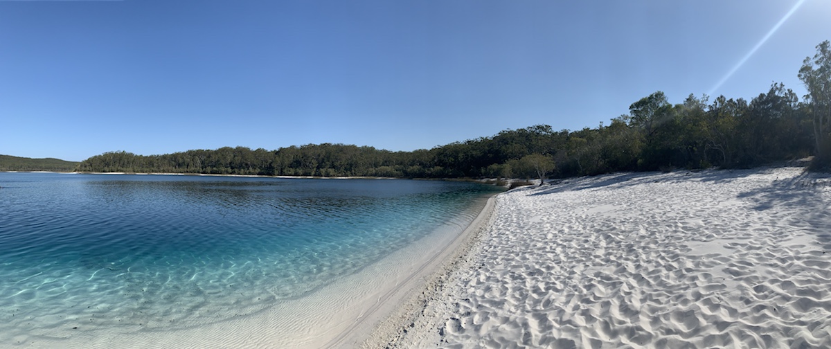 Fraser Island: The biggest sand island of the world (the soil only consists of sand). World heritage listed. You are only allowed to enter the island with a 4WD. “Streets“ are lanes in the sand. And that’s not half bad! Due to this I decided on a guided tour, my little Suzuki Swift would probably have got stuck in the sand. And this happened after approx 1km of driving to the car in front of us – despite of 4WD. Our guide just told us „welcome to Fraser Island! This is something we probably will see more often today!“ and than he added „but no worries, we have a MAN bus, build in Germany. Nothing can happen to us!“ for sure, dude. This one is from the Volkswagen Group. Of cause nothing will happen, we are building our cars with quality! 🤪 The day had been characterized by driving to various view points. An 8km-way from A to B took us 30 min or even more. The whole trip has been very bumpy. The highway? The beach. Max speed 80kmh, mostly slower. Flora & fauna? Rainforest and „normal“ forest. And a lot of fresh water lakes. Airport? Existing. One of two landing strips worldwide on the sand (second one is in Scotland) Where? Directly on the beach. Had there been a possibility to get a flight there? Of cause! It’s a guided trip, everything is planned. Did I took up on this opportunity? For sure! Quite spontaneous. But to be honest, I was about to get out of this plane. 1. As I saw the bad condition of it I was a bit worried. The German TÜV would have never ever approved this plane. 2. The pilot was probably a rookie, at least he had not much experience. The co-pilot (not me this time) always told him to flight, what to do, … well, I survived but it had been a very bumpy matter. It was very beautiful but flying over the Whitsundays and the reef raised the bar so nothing was able to top this. But one highlight was waiting for us: since the water had been amazingly clear we were fortunate to see some sharks. No big white sharks, no mental cinema please. Highlight of the island? Lake Mackenzie. Why? Find out on your own by looking at the pictures below. Overall a very successful day. Since I didn’t expected anything, I was more than just excited.
